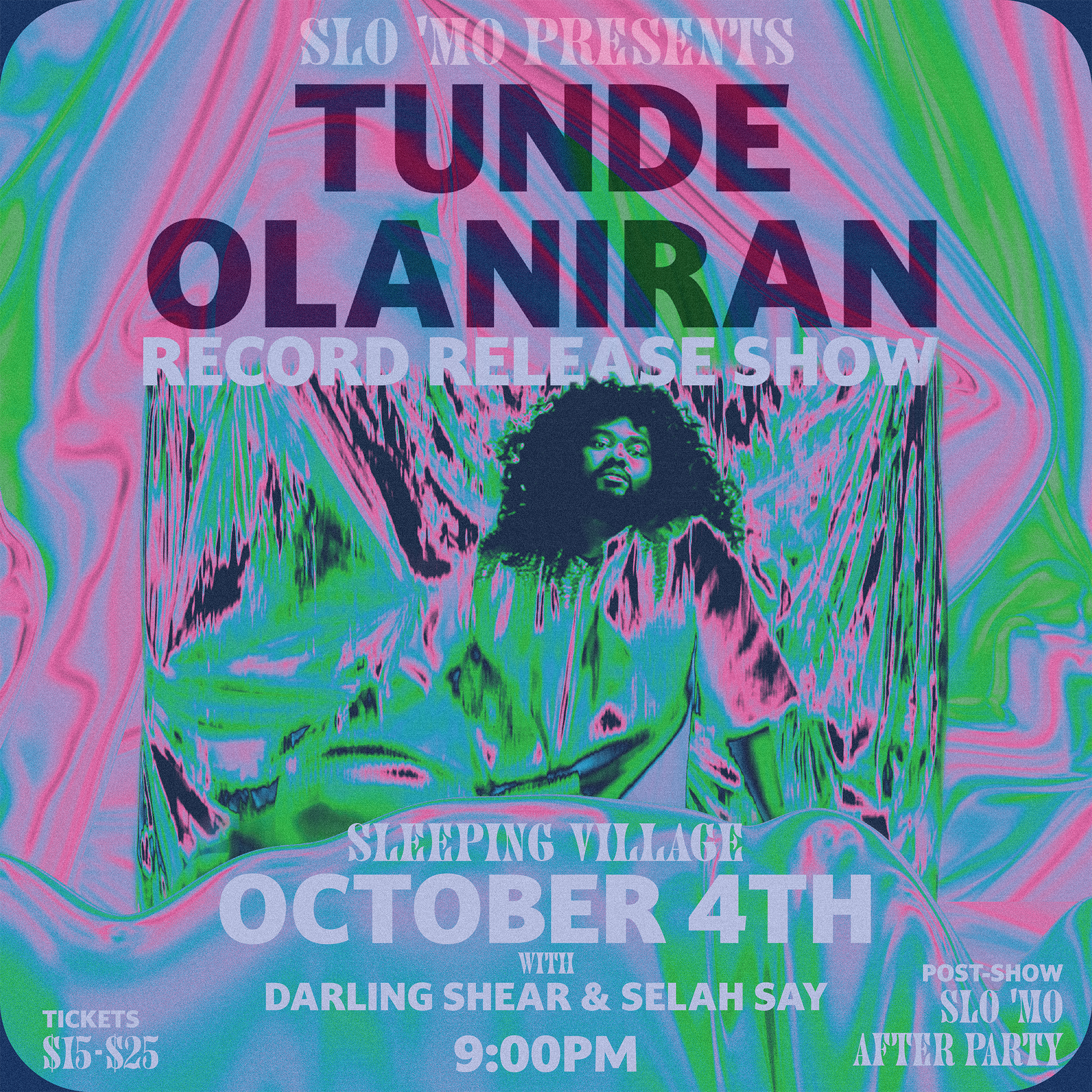 Slo ‘Mo Party presents a hair swinging, sweat flinging, larger-than-life performance to celebrate vinyl record release of “Chaotic Good,” the third studio album from Tunde Olaniran, an artist who subverts the status quo and delivers a genre-bending blend of pop, soul, and experimental electronic sounds. Known for their energy, unique choreography, intimacy, and emotional resonance, Olaniran’s music and performance explores themes of Blackness, gender, class, agency, and psychic/emotional power.