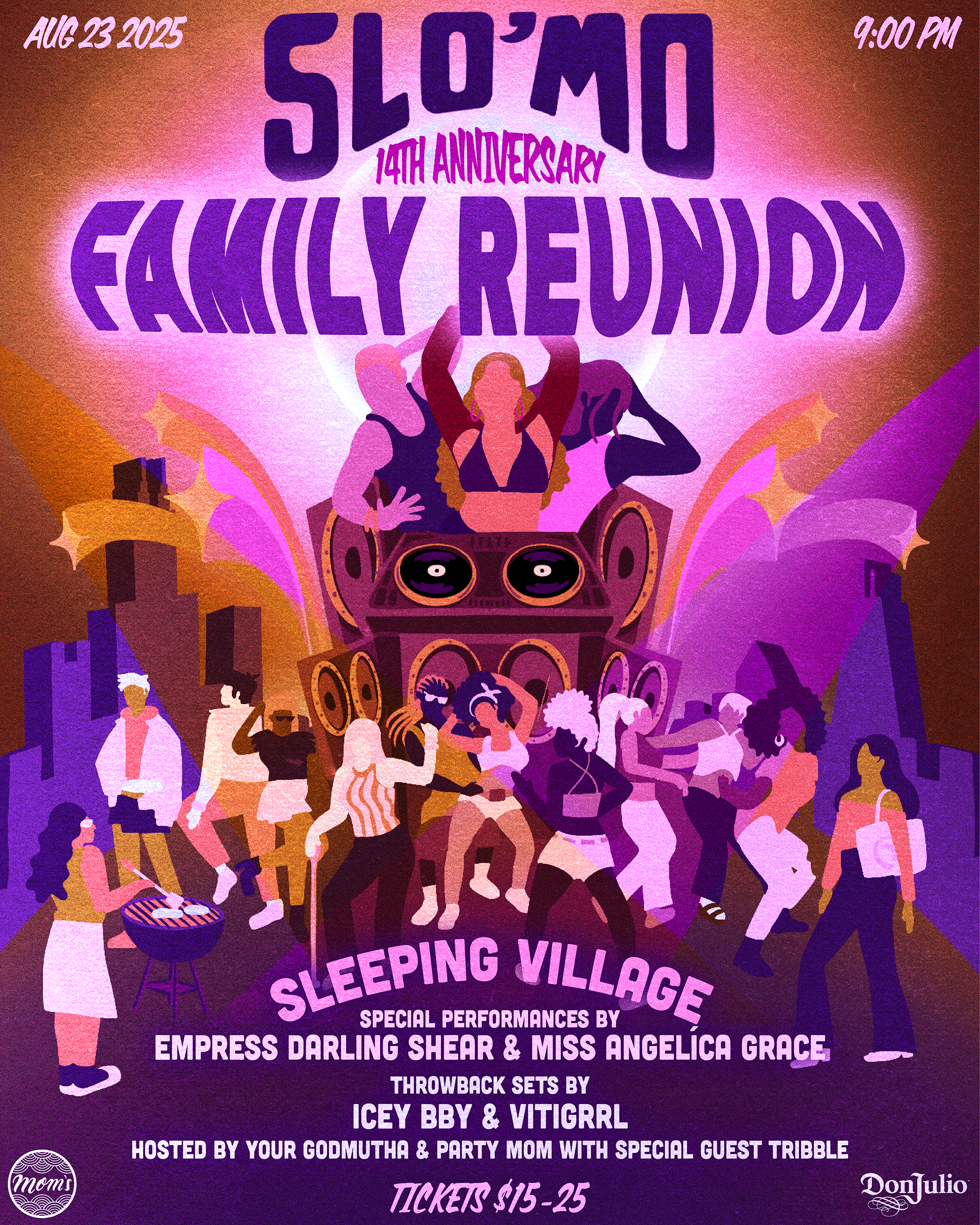 We’re celebrating FOURTEEN years of queer community connection, joy, creativity and growth! After a ten week reprieve from our monthly residency, we’re returning to Sleeping Village for our anniversary and it’s a family reunion! Our new friends and longtime fam are invited in a good ole fashioned get down, with throwback R&B sets by Icey Bby & VITIGRRL, a steppin dance lesson by Darling Shear and special performances by her and Angelica Grace and bbq on the patio by Mom’s. Tribble, our Slo ‘Mo cousin and former Queer Comedy series host, will join Your Godmutha & Party Mom on the mic as special guest emcee. Get in on the Don Julio solo cup specials and jump in the photobooth to crystalize the night with your friends.
