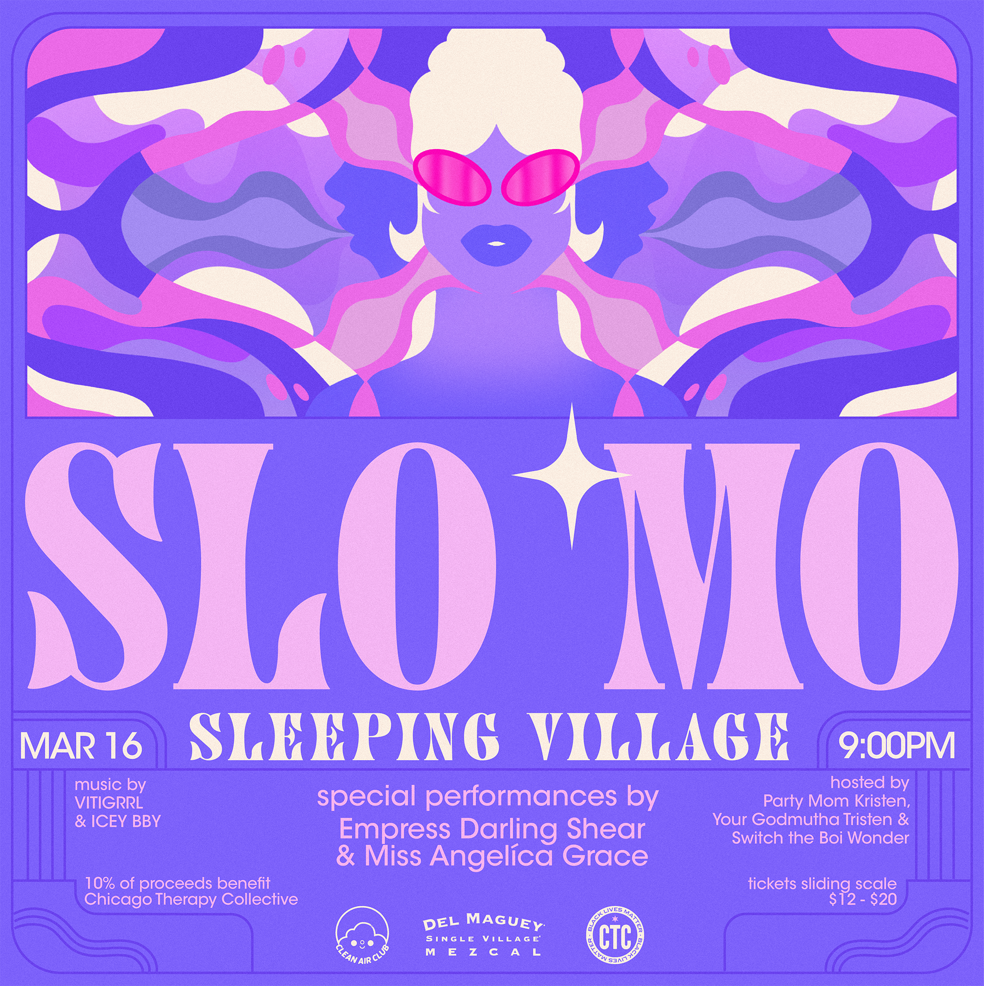 We’ve partnered with Clean Air Club to provide air purifiers in the concert hall and we will have K95 masks available at check-in. Booth reservations for people with mobility issues, who are pregnant or postpartum or otherwise need a seat can email slomoparty@gmail.com by March 15th. Sleeping Village is wheelchair accessible and spots in the venue for the best visibility can be reserved as well.